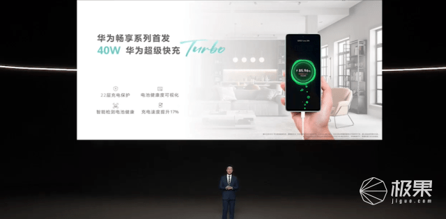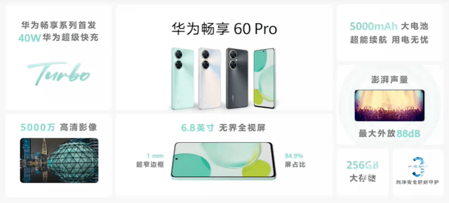续航方面,华为畅享60 Pro搭载5000mAh(典型值)大电池和256GB超大内存,以及40W华为超级快充Turbo,30分钟可充到60%,加之APP功耗优化能力提升,可满足全天的使用需求。