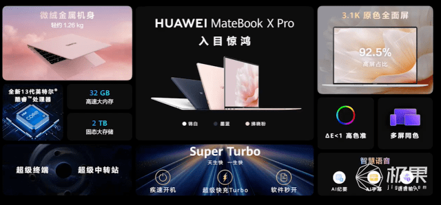 接下来华为还发布了一共5款笔记本产品,咱们分别来看看。首先就是这款MateBook X Pro 2023。