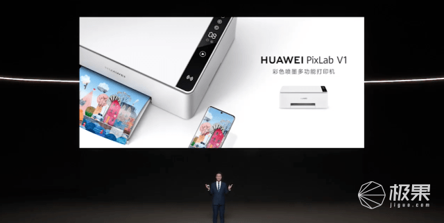 在智慧办公场景里官方还带来了这款华为PixLab V1打印机,其采用了隐藏式的触控面板,拥有原色打印引擎、超级终端、一拉即合等非常便利的功能。