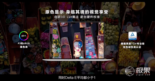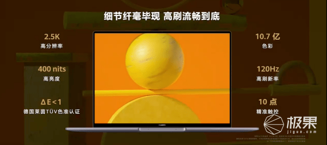 屏幕配置上,华为MateBook 14s 新品搭载了一块 2.5K 的高清触控屏,最高支持 120Hz 刷新率,采用 3:2 的屏幕比例,在纵向空间能够显示更多内容。还有100% sRGB 色域覆盖,10.7 亿彩显示,平均△E1的超高色准表现,还支持高精度的十点触控,这块屏幕的素质可以说是相当出色。