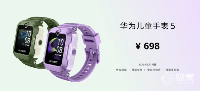 其他配置上,华为儿童手表 5 内置 800mAh 快充大电池,售价 为698 元。