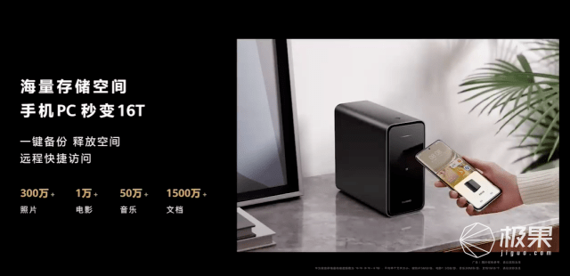 接下来还发布了一款华为家庭储存,能一键扩容手机存储空间以及在不同设备间实现强大的互联互通功能,绝对是家庭存储的首选。区别于传统NAS追求各种复杂功能,华为家庭存储直接将使用门槛降到了最低。从NFC触碰连接,再到无缝的资料备份,家庭用户基本不需要额外的学习成本。