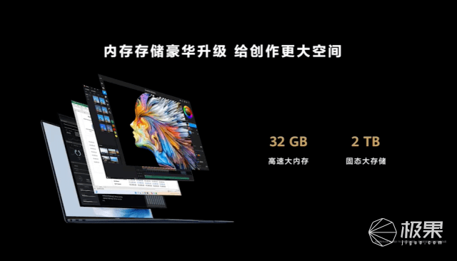 性能方面,MateBook 16s 2023处理器升级到最新的13代酷睿,最高可选旗舰级i9-13900H处理器,内存也提升到了32GB,这也是首款32GB大内存的MateBook 16s系列笔记本,还有1TB容量的SSD硬盘。