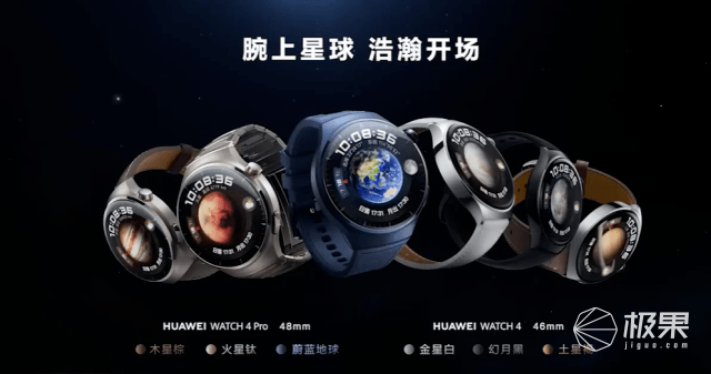这次,发布会上还带来了华为重磅的WATCH 4星球系列手表,其采用的是蓝宝石玻璃圆形表盘,配备有旋转表冠,整体呈现高端质感,还将包含“星球”系列定制元素,颜值特别高。
