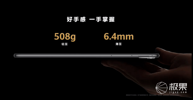 整机厚度低至6.4mm 轻至508g ,体感克重同挡位最轻,可以说是十分轻巧便携。