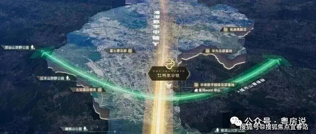 (2)产业中轴|精粹5公里,数字龙华的先锋样板梅观大道堪称深圳的“产业脊梁”,在鹏宸云筑周边5公里的轴线上,汇聚了华为总部、富士康总部、观澜高新园、北站国际商务区、星河WORLD总部、九龙山科技园等六大世界级产业巨头,无论是数字经济、智能制造,还是国际商务与科技研发,这里是龙华乃至深圳的产业策源地,是数字龙华的先锋样板。