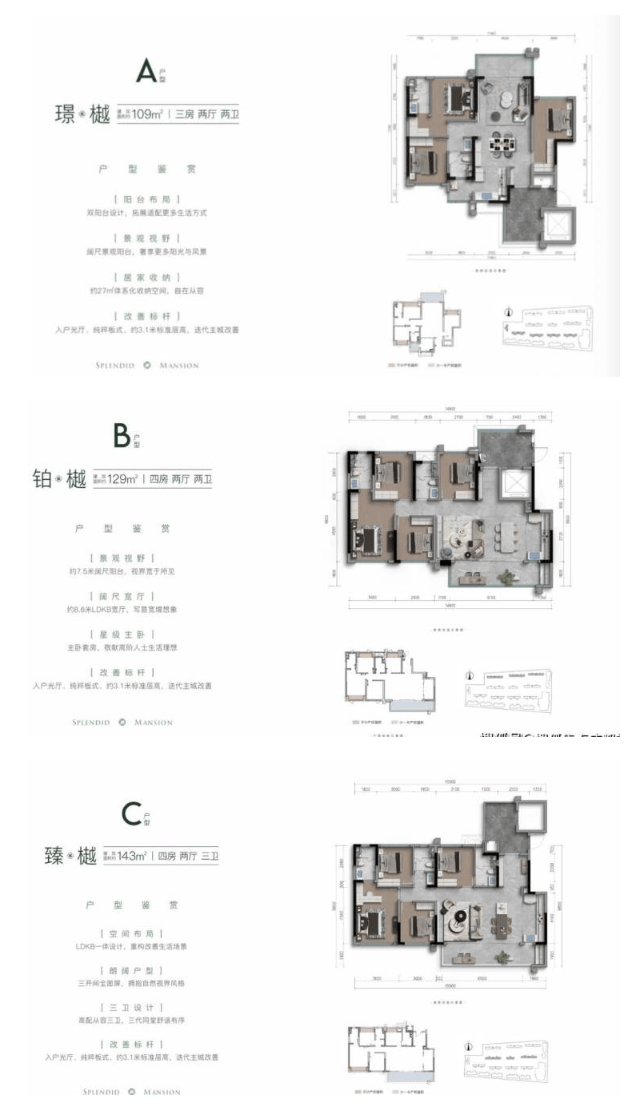 项目主力产品为建面约109-143㎡的精装户型,全线户的优越配置,旨在为主流改善家庭提供功能完备、空间舒适、面向未来的居住解决方案。