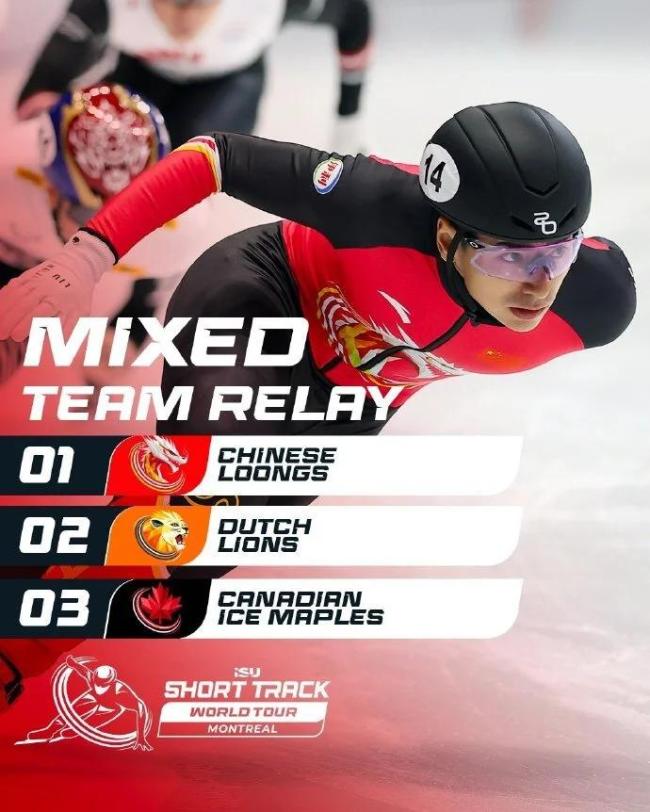 在2025-26赛季短道速滑世界巡回赛蒙特利尔站的比赛中,中国队取得了优异成绩,具体包括:混合团体接力金牌(公俐、张楚桐、王欣然、孙龙、刘少昂、李文龙、张柏浩),男子5000米接力银牌(孙龙、刘少昂、林孝埈、李文龙、刘少林、张柏浩),男子1000米铜牌(刘少昂)以及男子1500米铜牌(孙龙)。