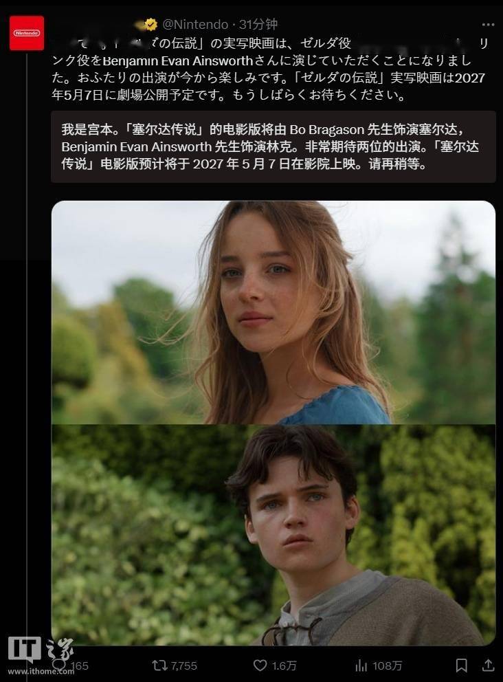 不过电影的具体细节目前仍处于保密阶段,根据任天堂 7 月份在 X 平台的发文,塞尔达公主将由 Bo Bragason 扮演,而林克则由 Benjamin Evan Ainsworth 扮演,整部电影立项于 2023 年 11 月,制作方包括任天堂代表董事宫本茂、前漫威影业 CEO Avi Arad。